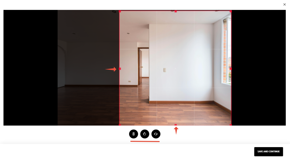 Note: Any vertical line should look upright to achieve the desired / realistic, final lookCrop the image using the cropping handles on the edges and the corners. You can lock the image's aspect ratio or rotate it using the buttons at the bottom of the page.