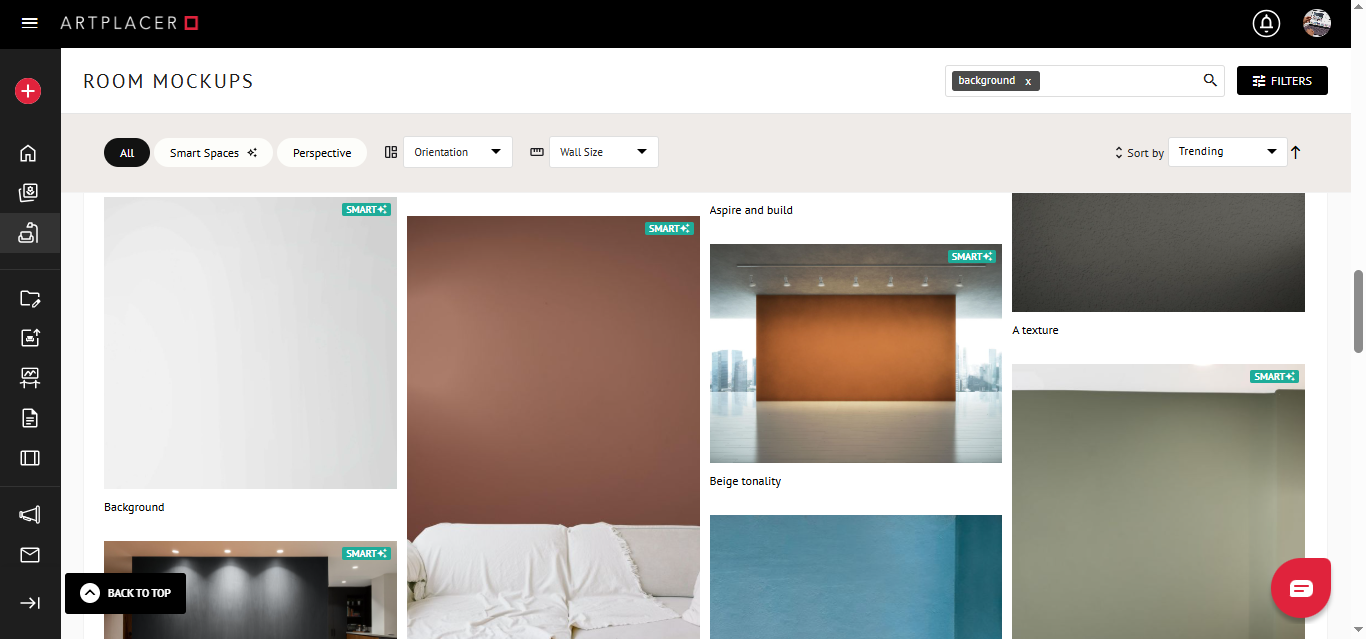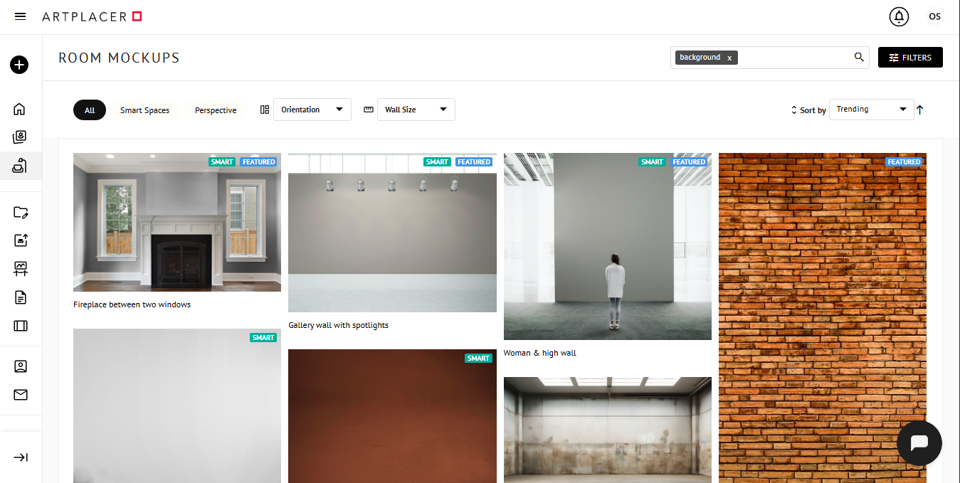 Select the room titled “Background” from the results. This is a Smart space, so you can change the background color as desired. Keeping it white helps highlight the framed piece on its own, and it’s a perfect addition to product pages.