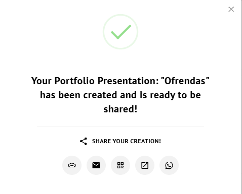 A new tab will open with the presentation for you to review. You can now PRINT the whole presentation on paper or to a PDF file, share the URL generated, and/or print or share a QR code.